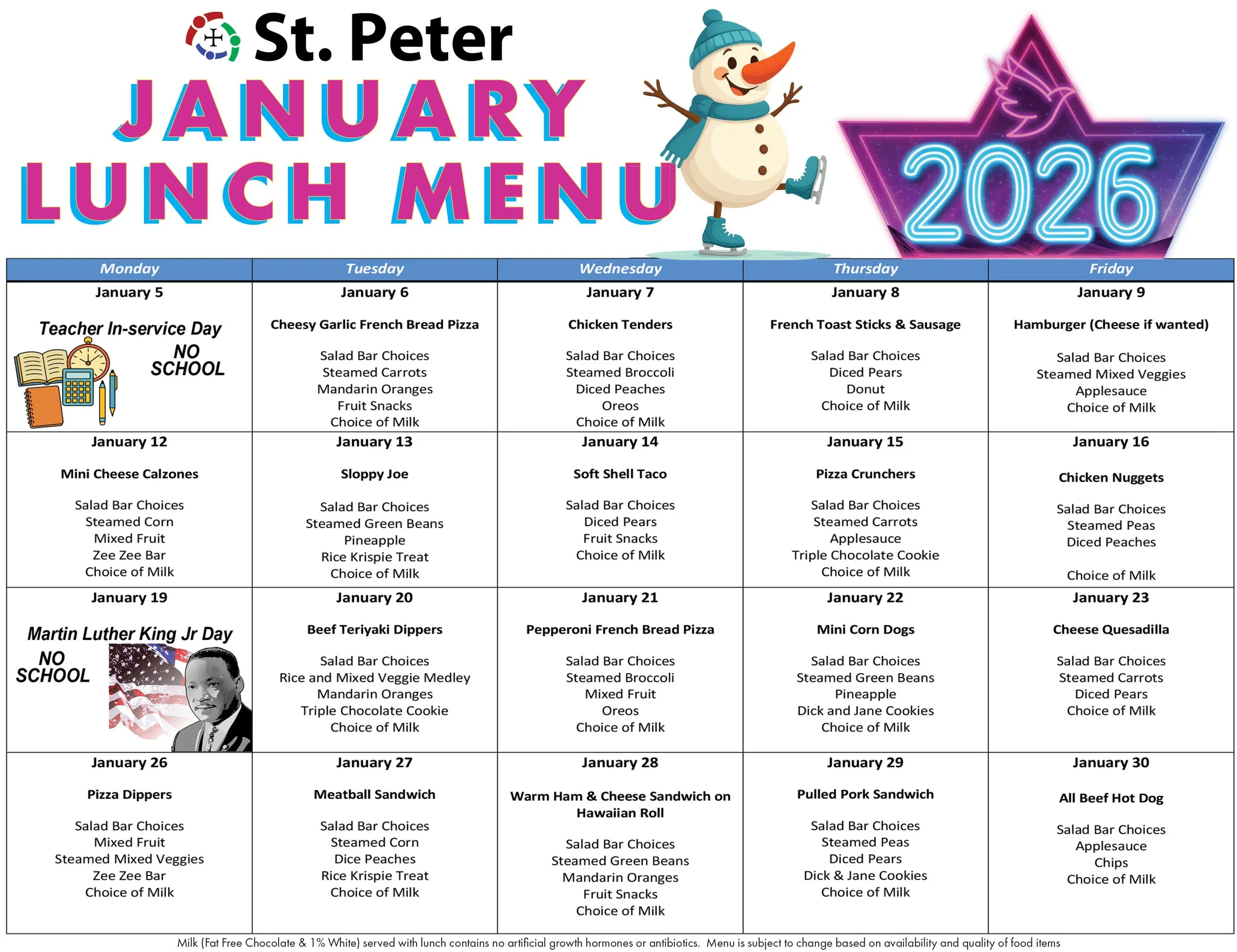 • Hot lunch and Ala Carte order forms can be found on the school’s website stpetermyschool.com/lunch A link can also be found in the SAINTS UPDATE which is emailed to families each week on Friday.