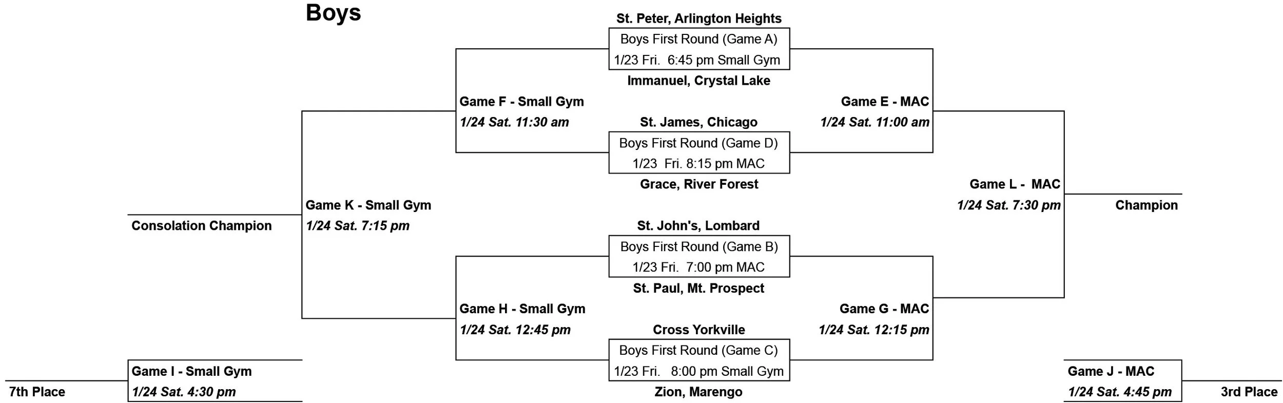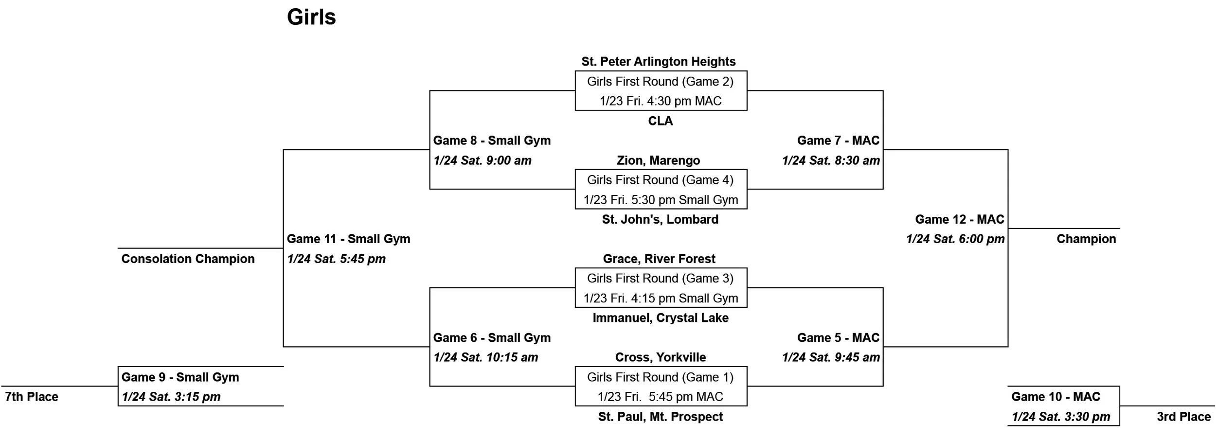 In January 1997, Athletic Director Andy Fritz and Booster Club Leaders Sandy Siok and Barb Woike along with sponsorship help from Pepsi Cola Bottlers held the first annual St. Peter – Pepsi Classic. In 1999, the tournament’s association with Pepsi Cola ended and a partnership with Mueller Services, Ltd. began. At that time, it was decided to change the name of the tournament to “Saints Shootout” and add the theme “In His name we play”. In 2000, the tournament expanded by adding 8 more girls teams. The first girls championship was won by the host Lady Saints. Each year, volunteers work together under the leadership of the athletic program to provide a quality experience for the participating teams and guests. From grilling at the concession stand to operating the clock, the success of the tournament relies heavily on the efforts of St. Peter families, alumni, staff volunteers, and sponsors. We want them to know their efforts are greatly appreciated.